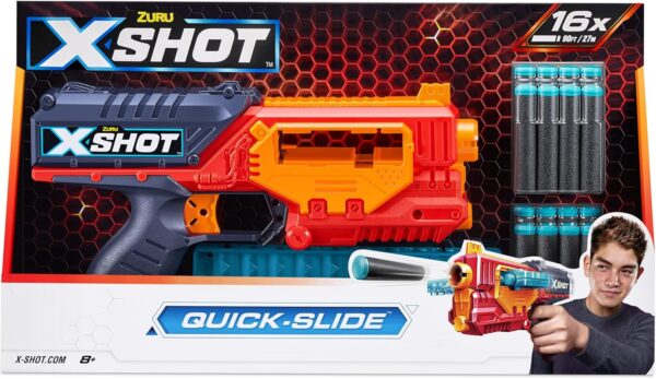 - 16 Darts: The X-Shot Excel Quick-Slide comes with 16 darts to keep you loaded all battle.