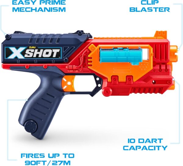 - Speed: Use the top priming handle to activate the auto-sliding clip and blast at a firing rate of 4-darts per second.