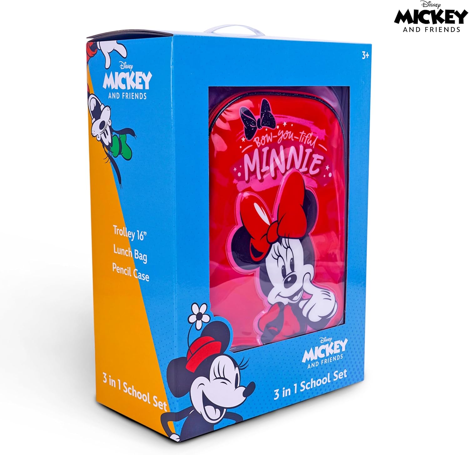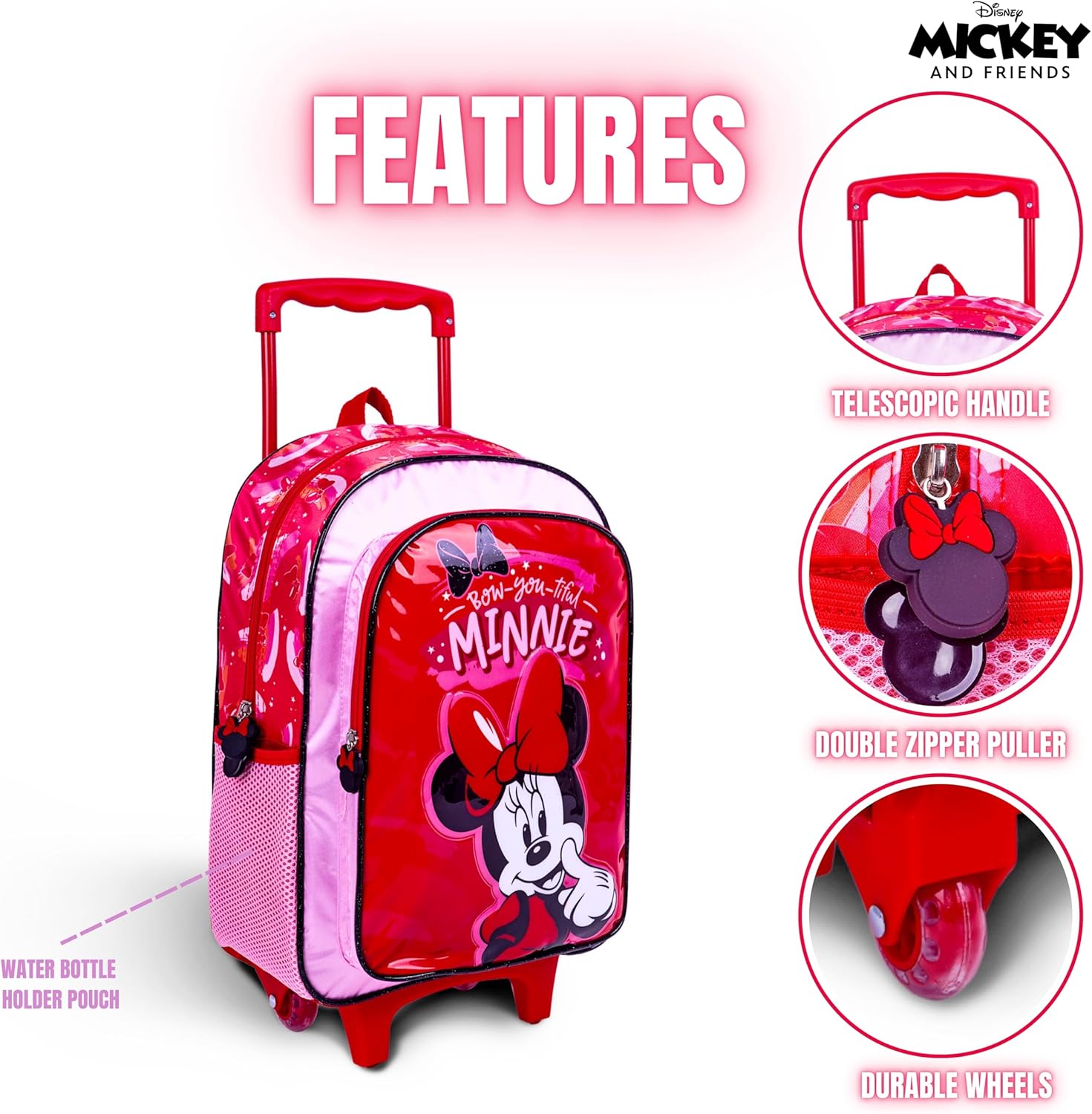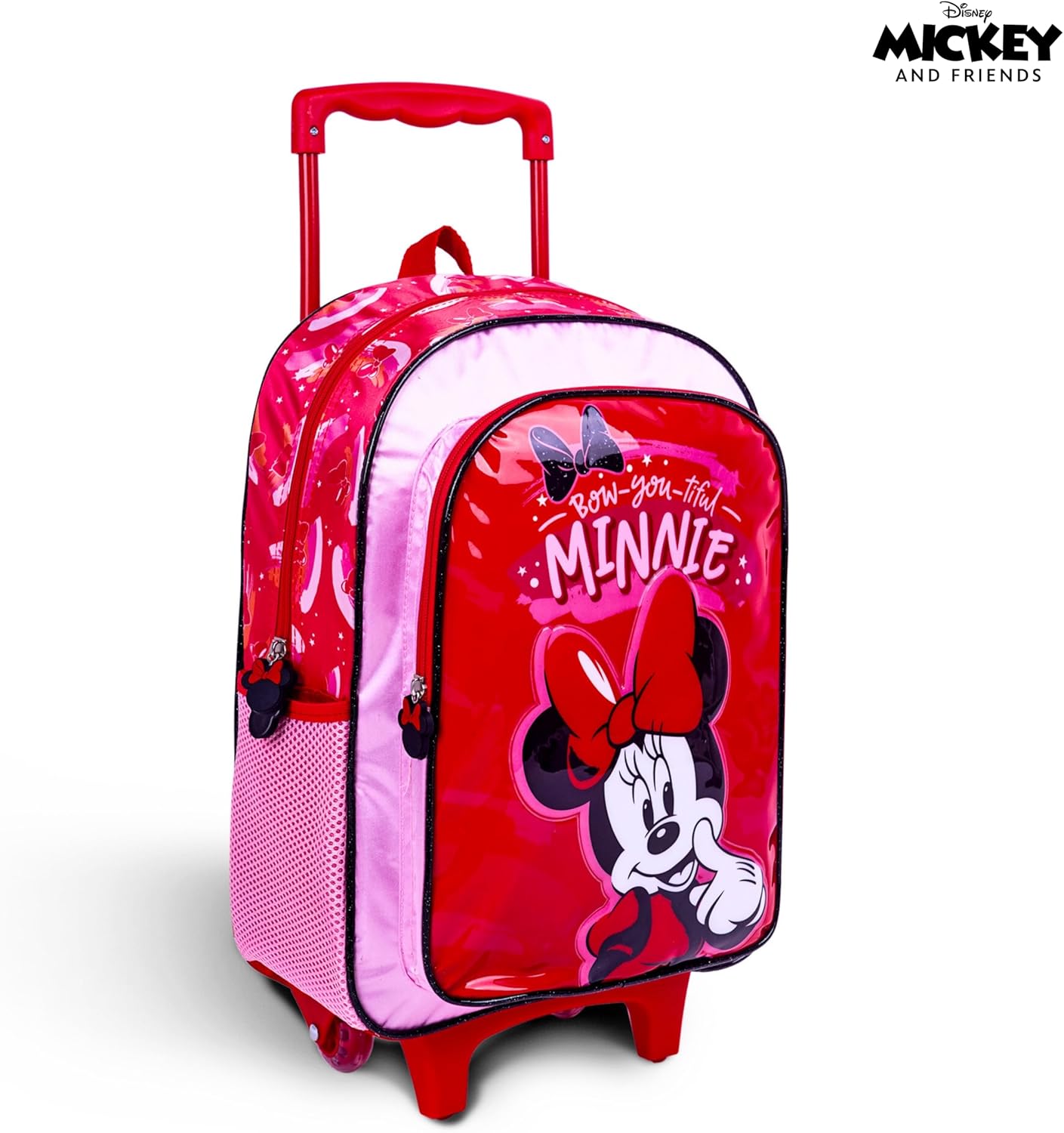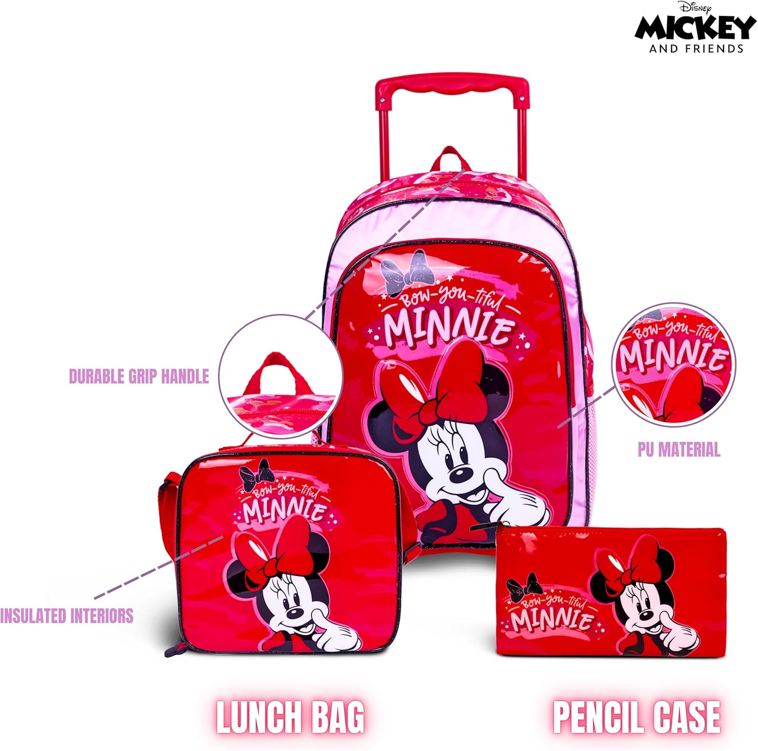 Disney Minnie Mouse 16 Inch Kids 3-in-1 Trolley School Bag Set – Ergonomic Backpack, Insulated Lunch Bag & Pencil Case,Lightweight, Students 6+ – Perfect for Travel & School,For Girls