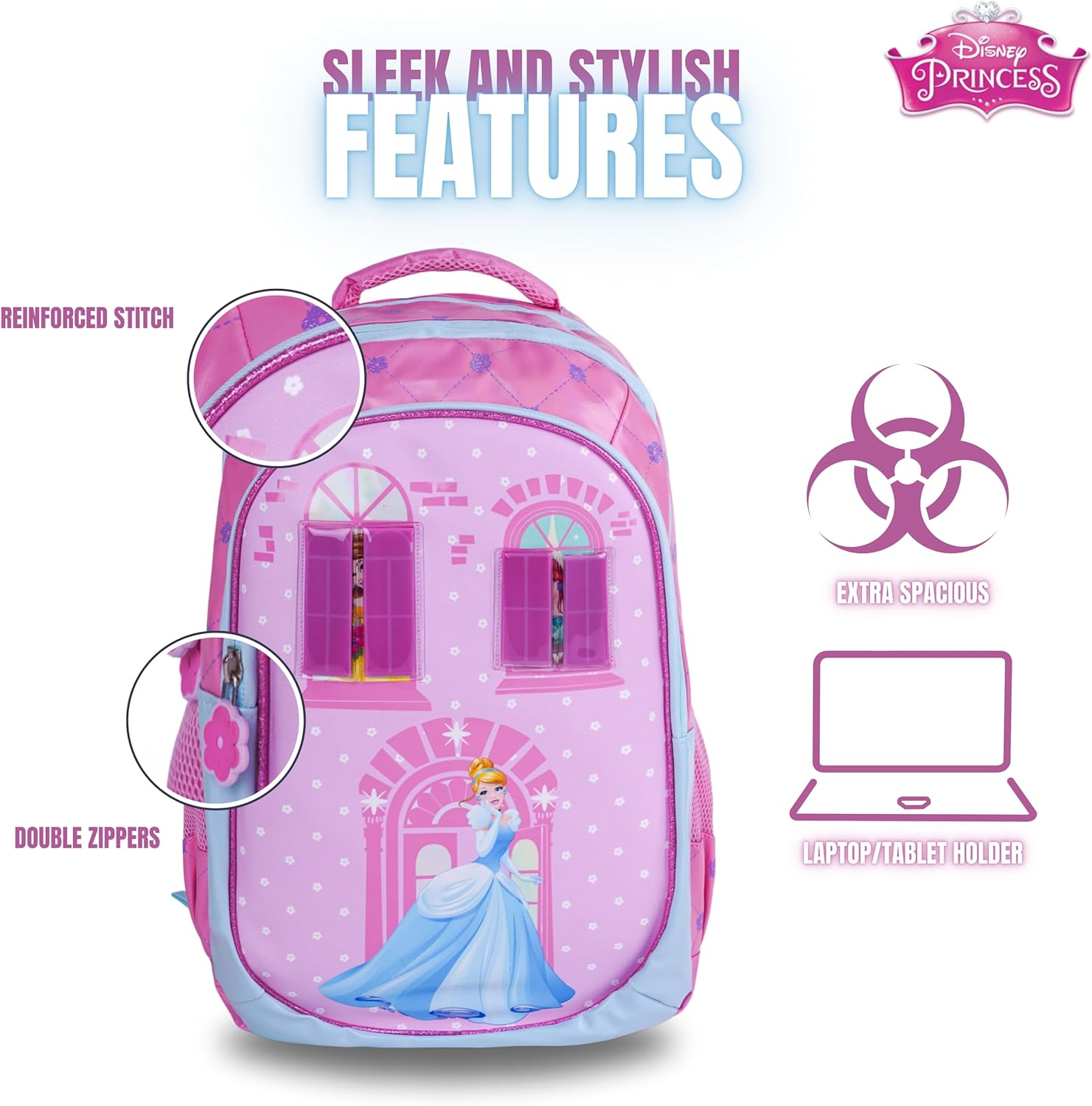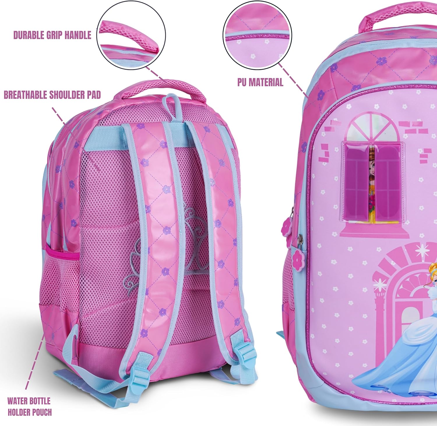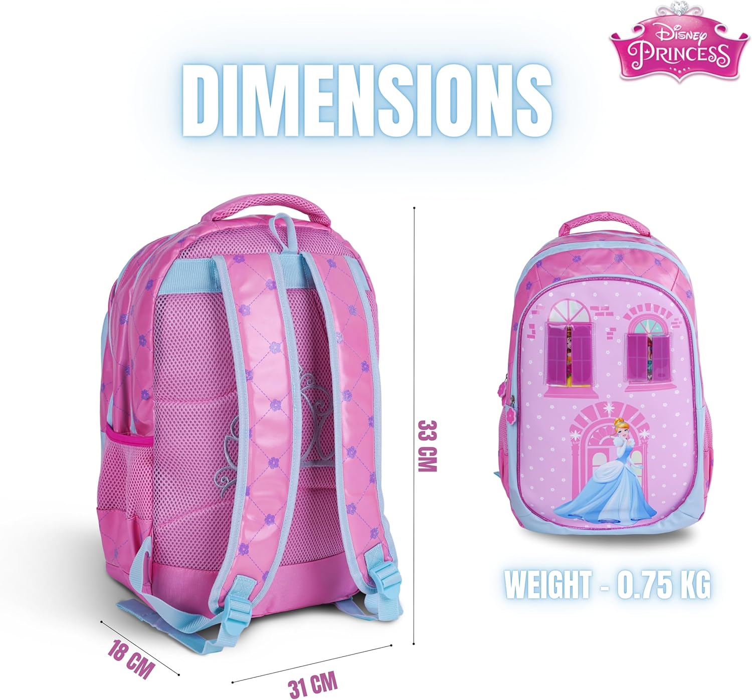 Disney Princess 18 Inch Kids School Bag – Ergonomic Backpack Lightweight, Durable, Students 6+ – Perfect for Travel & School,For Girls