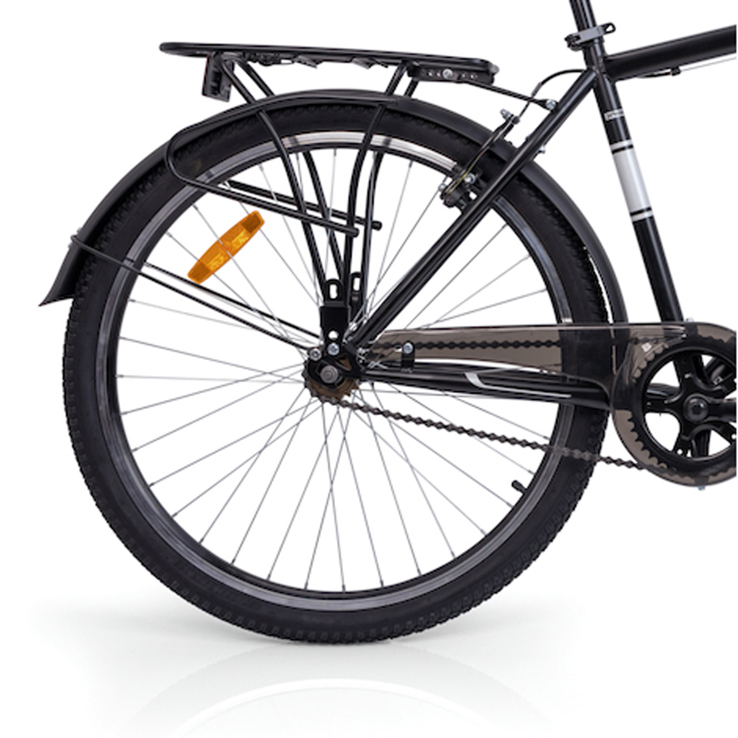 The chain cover prevents clothes from getting caught while riding.