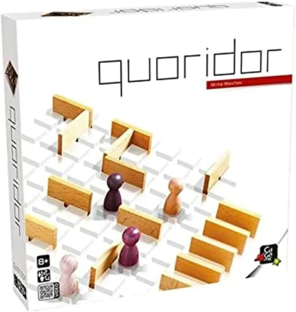 Quoridor is a milestone of the abstract game genre and already sold more than one million units worldwide. It’s a captivating game for the whole family to enjoy. Players gradually build a labyrinth. The aim is to be the first to cross it. In turn, each player chooses between moving their pawn or placing one of their walls. You have to move fast while impeding your opponent’s progress at the same time. But an access to the goal line must always be left open! The winner is the first to reach the line opposite to their starting point.