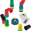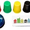 A game of color sequences and speed! In this fast-paced action game, each player receives 5 colored cups. Flip a card with an illustration in the middle of the table. Each player should recreate the color sequence to match the color order in the picture. Be the fastest to ring the bell and claim the card. Every card gets you closer to victory! Ready, cup, ring!