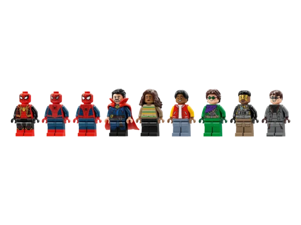- Iconic Minifigures: Includes Friendly Neighborhood Spider-Man (Tobey Maguire), The Amazing Spider-Man (Andrew Garfield), Spider-Man (Tom Holland), Electro, Green Goblin, Doctor Strange, Doc Ock, MJ, Ned, and Sandman.