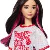 Barbie doll has a petite body type and pink streaks in her dark wavy hair to complete her cute look!