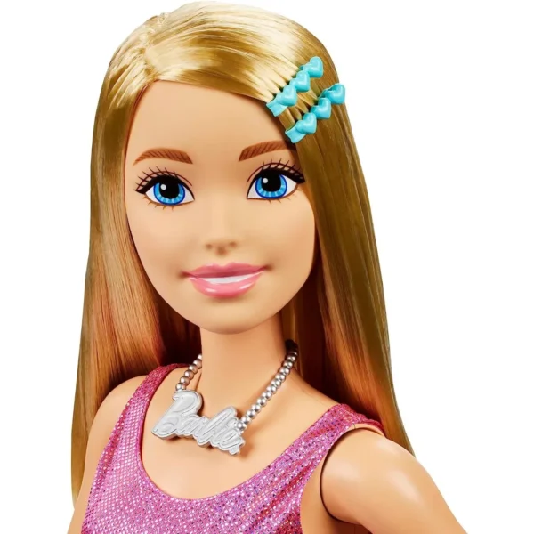 - Fashion Accessories: Comes with a Barbie logo necklace and two heart-detailed hair clips for endless styling fun.