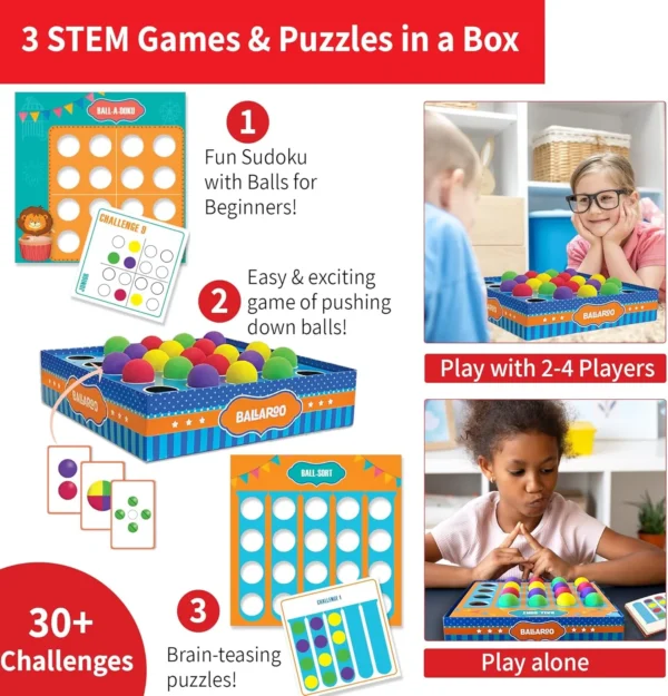- 3 MIND-BLOWING LOGICAL GAMES AND PUZZLES- Stretch your mind and challenge your thinking with the super fun Ballaroo Game. This unique activity set is designed to enhance problem-solving and reasoning skills in preschool kids with 3 activities