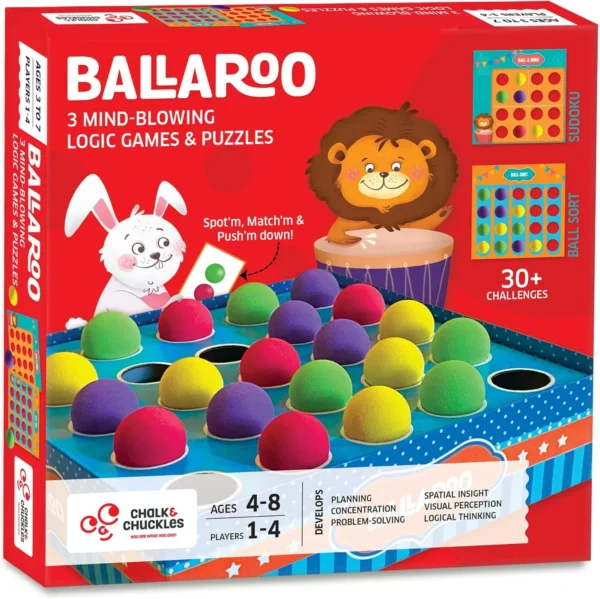 Chalk and Chuckles Chalk & Chuckles Ballaroo 3-In-1 Brain Games For Kids Age 4-8 Year Old, Stem Educational Toys, Mind Game, Sudoku, Ball Sort Puzzle, Gifts For Girls, Boys Ages 5, 6, 7