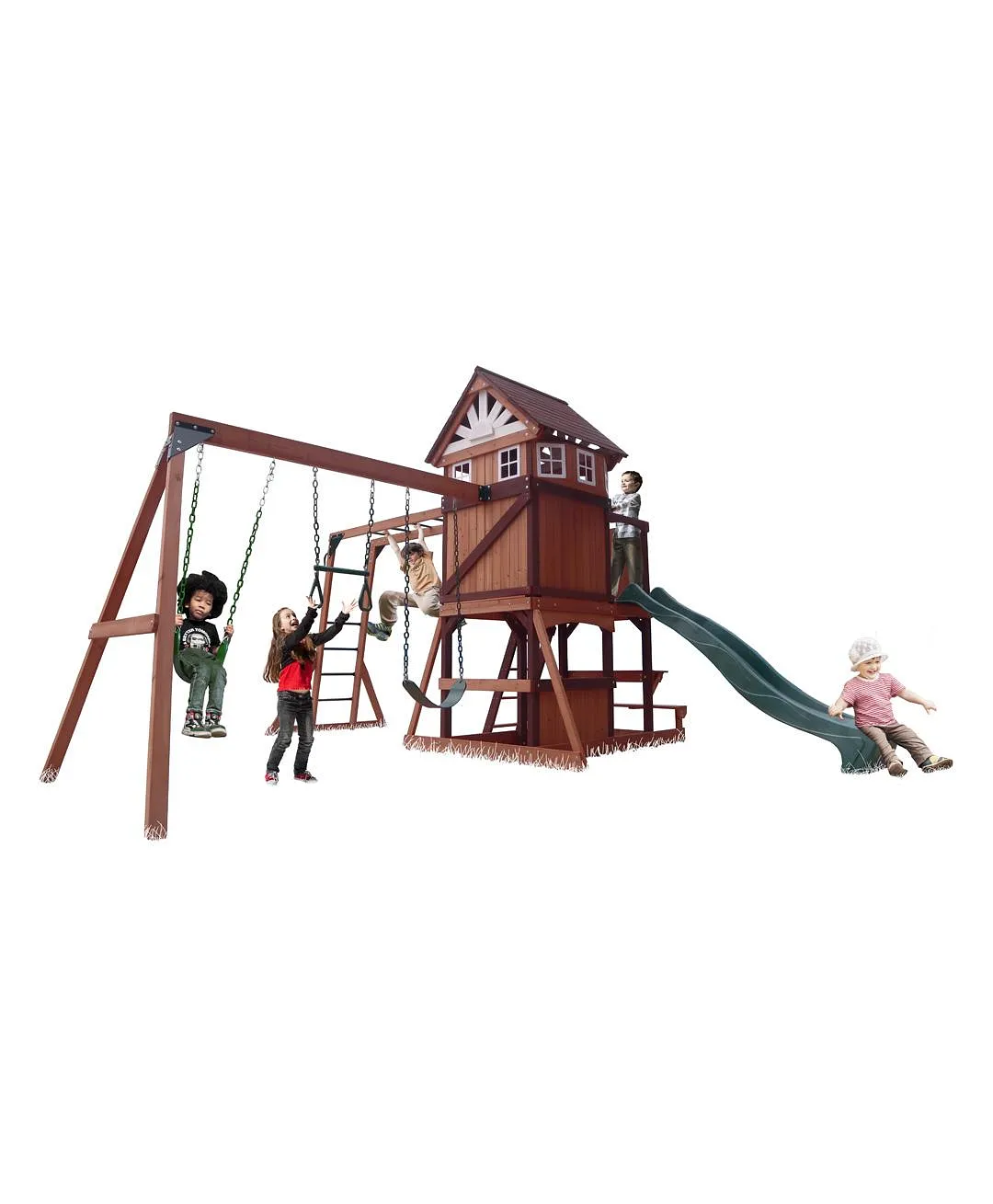 Mount Peak – Vinson Massif Swing Set & Playhouse with wooden roof