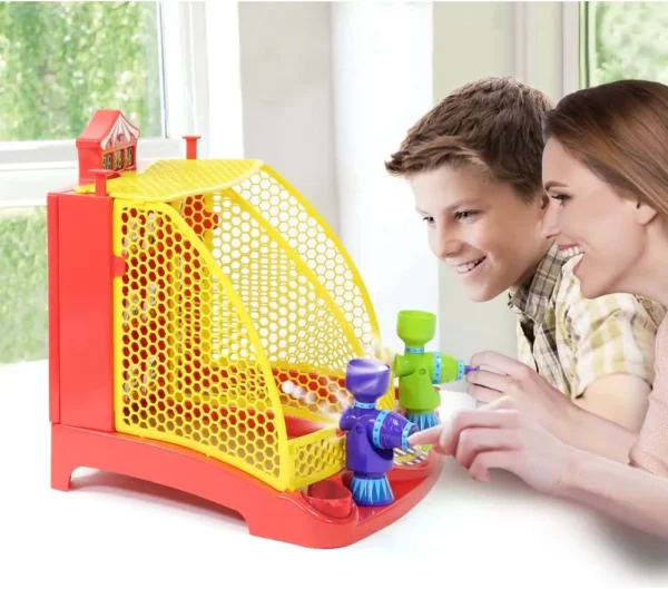 Bring the Thrills & excitiment of the most Popular Carnival , and Arcade Games home with Eletronic Arcade Down the Clown , 1 of the oldest and most beloved, carnival Games, this Tabletop version recreates the same Experince challenge and fun as the original it has a 2 Player Race. Against teh clock as each player there is knock over as many clowns as Possibile in 60 secinds time limit . The large LED score board displays the remaining time and points for each player , Each row of Clowns also has the Different point value and marks the funny sound effect , when knocked over even more Exciting at any Point Each Player can push down Lever to have all the clowns Pop up back up then try knock them over again, To gain more Points load the balls into your special circus cannon. Take aim and fire away. Also future Carnival Music and Ball collection.