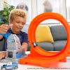 - Kids will love learning to master the massive loop and the spring-loaded ramp. The landing adjusts along the track for a movable target and enhanced difficulty.
