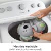 - Machine-washable (with electronics removed), extra-cozy plush with satiny ears and embroidered details